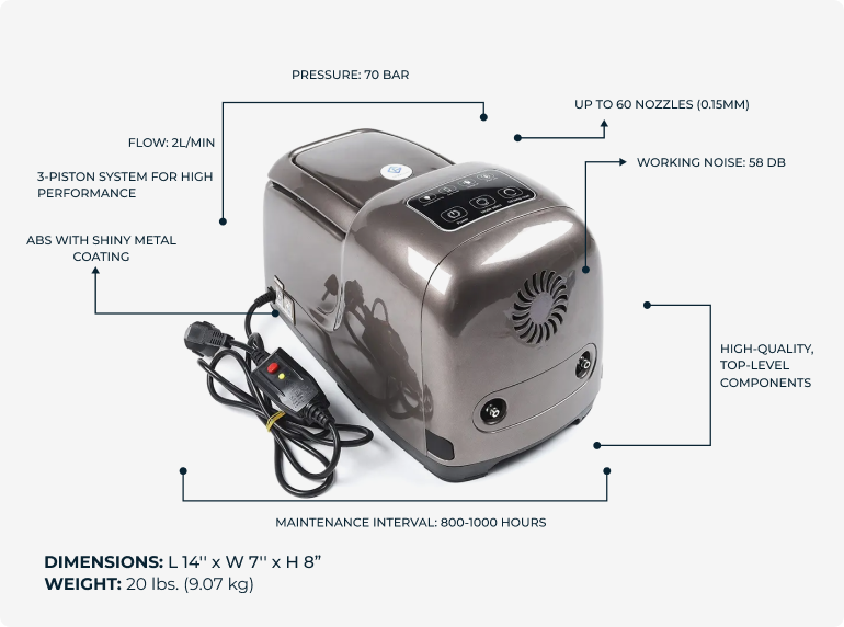 Built for durability, it supports multiple nozzles for even and efficient cooling across spaces of any size. With a maintenance interval of 800–1000 hours and a weather-resistant build, it ensures long-lasting, uninterrupted performance you can depend on.